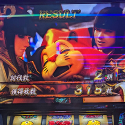 レバーを叩いてボタン押す——そんな繰り返しの先にも、たまには当たりが落ちてくる。